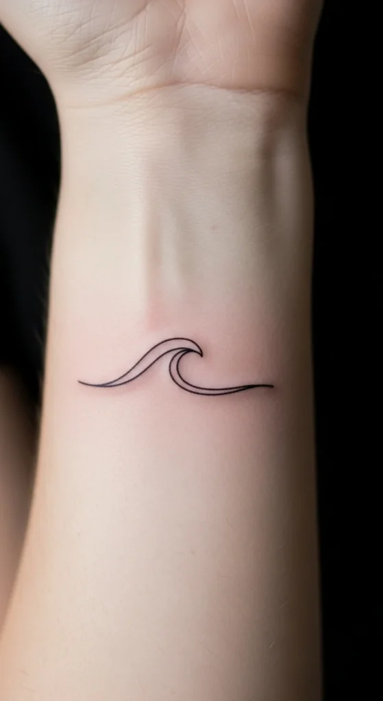 A tiny wave works well if you like calm imagery. It’s just one continuous line, quick to tattoo and easy to hide. People often choose it to represent personal growth or steady movement. If you want to try it at home first, draw a short flowing line near your wrist and see how it looks while you move. This tattoo works especially well with patchwork clusters, pairing nicely with stars, dots, or hearts. Artists say it’s a great first tattoo because it’s simple and ages well. Choose soft linework instead of bold strokes for a cleaner look. The cost stays low due to its small size, and you can place it almost anywhere—from the ankle to the base of your thumb.