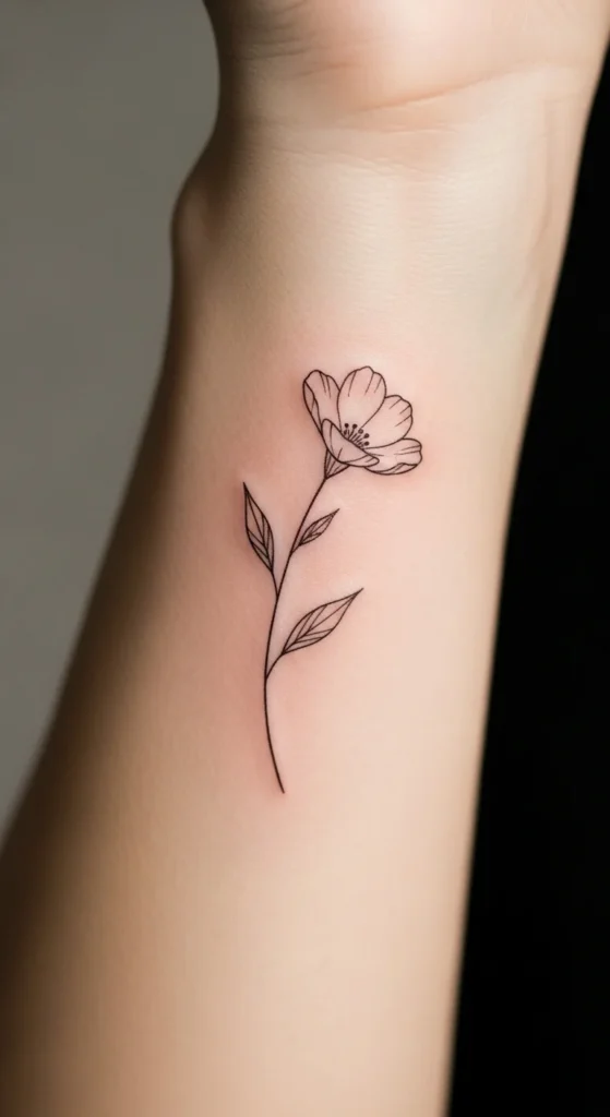 A micro flower stem feels gentle and symbolic. Many people choose their birth flower or a flower tied to a personal memory. The best part is how small these can be—often just one inch tall. A quick way to preview the design is to print a small outline and tape it onto your skin to test different placements. The inner arm, hip crease, and ankle are trending spots this year. You can keep the cost low by avoiding shading and choosing simple outlines. These tiny stems fit perfectly into current fine-line trends and pair well with sticker-style clusters. They carry meaning quietly without drawing attention, ideal for anyone who prefers subtle tattoo art.