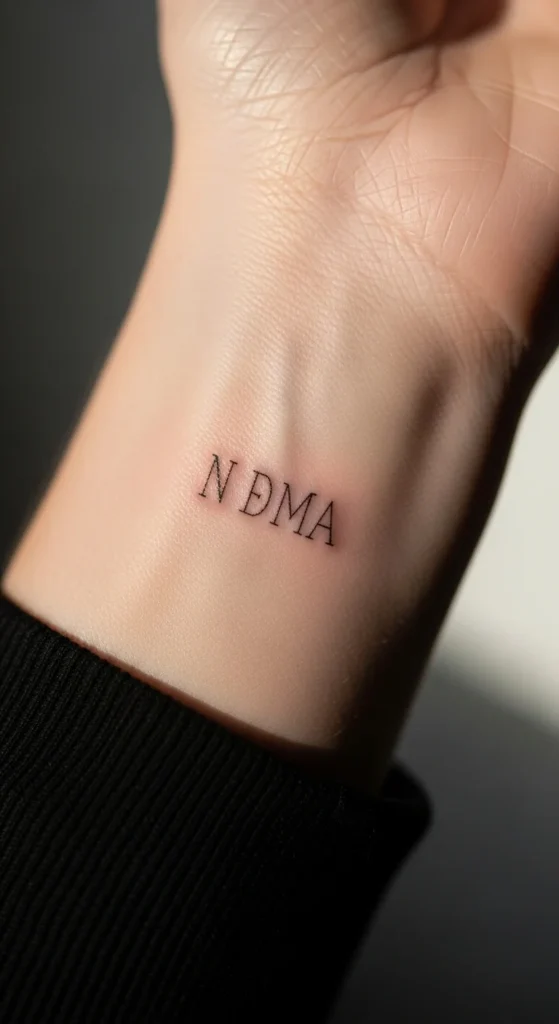 Tiny quotes are popular again, but most people are sticking to 1–3 letters or initials. This keeps the tattoo subtle and clean. If you want something meaningful without looking bold, this is a safe choice. To test it, write the letters with a pencil on your wrist and take a selfie in natural light. You’ll see instantly whether you want it even smaller. Choose simple fonts so the tattoo ages gently. Artists say small wrist letters are among the quickest and most affordable tattoos to get. You can also place it near the hem of your palm for a barely-there effect. Add a tiny dot or heart if you want something more personal without going bigger.