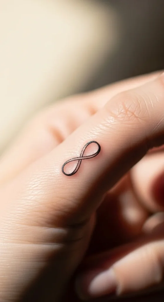 A whisper-thin infinity loop stays delicate and meaningful. Most people choose it as a reminder of personal promises or lasting connections. Keeping it small makes it feel grown-up, not trendy. You can trace a loop on your hand with a gel pen to see how it flows with your natural movement. This design stays budget-friendly because it’s quick and easy for artists. Stick to thin lines for a softer look. You can also angle the loop sideways to make it more unique. It’s a small tattoo that quietly adds a personal touch without drawing attention.