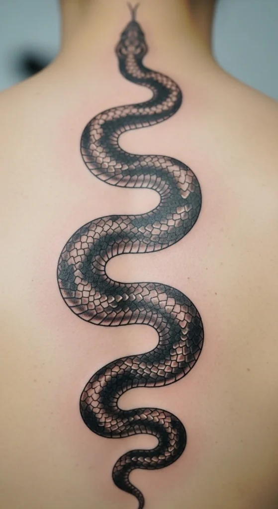 Snake tattoos down the spine feel confident and grounded. They represent renewal and personal strength. If you want a simple version, choose a smooth-bodied snake with minimal shading. This keeps the cost reasonable and the session time shorter. A single curve along the vertebrae adds motion without complexity. You can also skip scales and use a clean outline for a minimal look. Ask your artist to adjust the curve so it fits your natural posture.