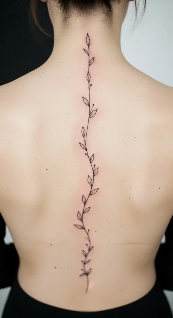 Vines bring subtle movement to your spine design. They look graceful and adapt well to small budgets. You can choose a single vine or multiple branches with a few leaves. Light line work is enough to create a gentle effect. This style is low-commitment and easy to hide if needed. Try sketching the shape on your back using eyeliner to preview the flow before booking your session.