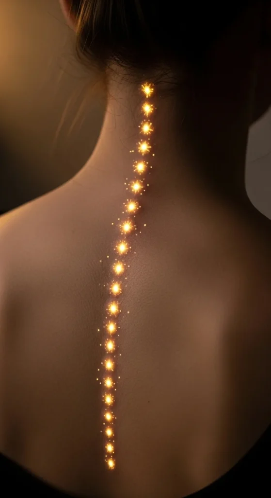 Firefly designs feel gentle and whimsical. Small dots or tiny winged shapes can create a glowing effect. This idea works great if you prefer minimal art. Keep the shapes small to stay within budget and reduce pain. The layout is easy to customize—add more dots later as you wish. This spine style also suits people who want something subtle for work environments.