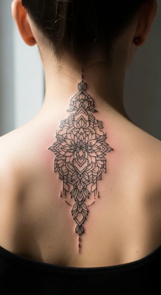 Spine tattoos draw attention because they follow the natural vertical line of the body. They feel expressive, personal, and bold without taking up unnecessary space. Current interest centers on fine-line florals, geometric symmetry, chakra themes, and mythical symbols. This list gives you ideas that look striking while staying realistic for different budgets and pain levels. Each idea is simple enough to discuss with an artist, even if it’s your first time planning a back design.