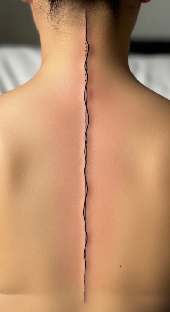 A freehand line is one of the most personal spine designs. Your artist draws it directly on your back to match your natural curves. This helps create a shape that feels unique to you. The process is simple and usually affordable. Keep the line clean with small waves or bends. It pairs well with dots or small shapes if you want to add more later. This idea suits anyone who prefers art that feels natural and subtle.