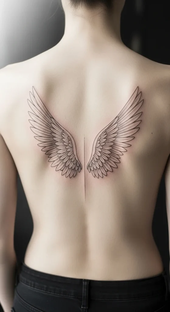 Wing tattoos along the spine make a strong visual statement. They symbolize freedom, strength, and personal growth. You don’t need a full back piece for impact—thin, elongated wings are affordable and heal quickly. Start with a simple outline, then add feathers later as your budget allows. Light shading at the ends creates depth without needing a long session. Bring inspiration photos to your artist so the wings match your shoulder width. This design works well for any gender and suits both bold and minimal preferences.