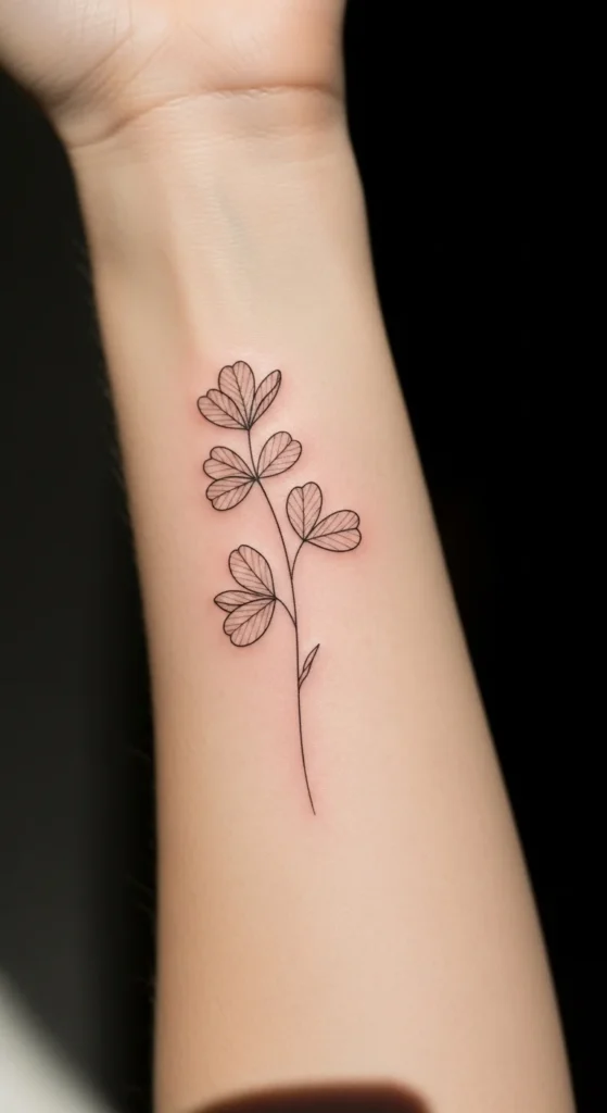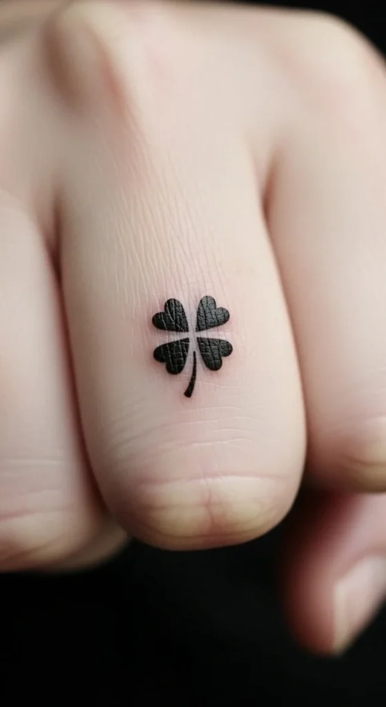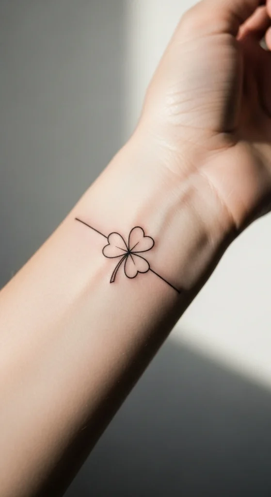 A clover outline keeps the look airy and light. Unlike filled designs, the open space inside the shape lets skin show through. That keeps the tattoo from feeling heavy. It’s a good option for fingers, collarbones, or the outer foot.