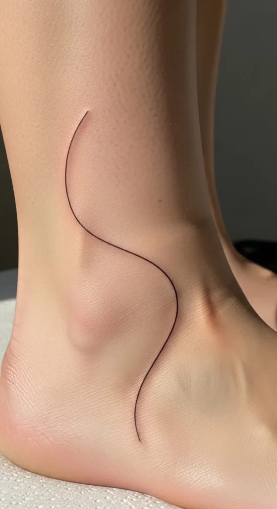 This tattoo pairs well with casual outfits and doesn’t compete with other ink. It also layers easily if you add more line tattoos later. Single-line designs age gently when placed on low-friction areas. Choose placement where the skin doesn’t stretch much to help it stay crisp.