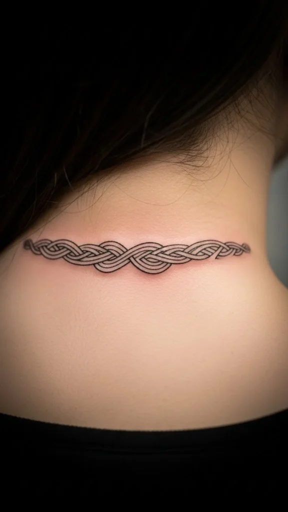 10) Tiny “Celtic Wave” Line Along the Nape