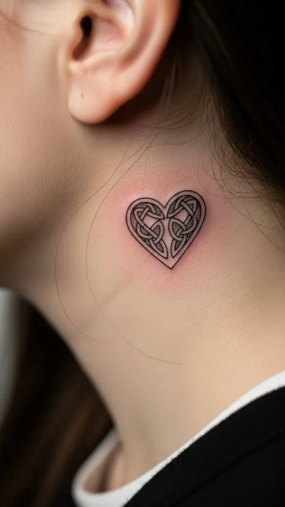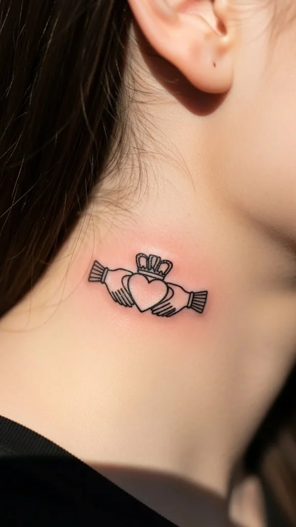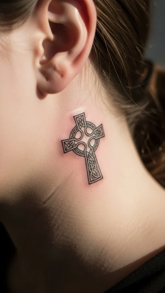 If you like traditional Irish symbols, a small Celtic cross outline can work as subtle neck ink when it’s kept light. Avoid thick fills and heavy shading.