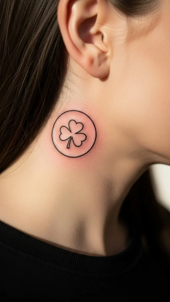 This idea looks cool because it uses the body’s natural lines. A small shamrock with a gently curved stem can follow the neck tendon, so it feels like it belongs there.