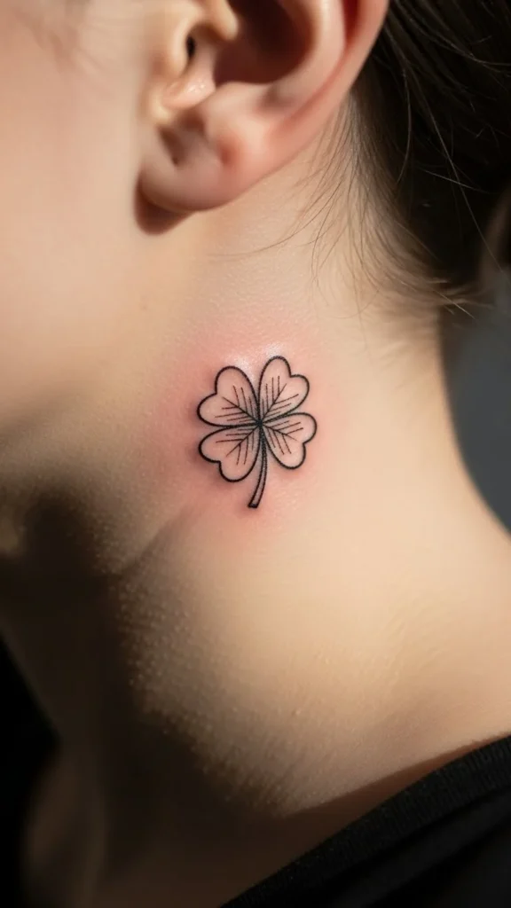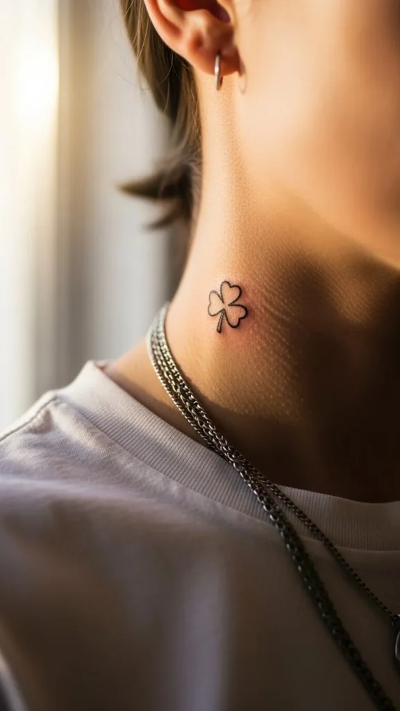 Under the jaw is a sneaky spot. It’s visible when you turn your head, but it’s not front-and-center. A four-leaf clover here feels playful and low-key.