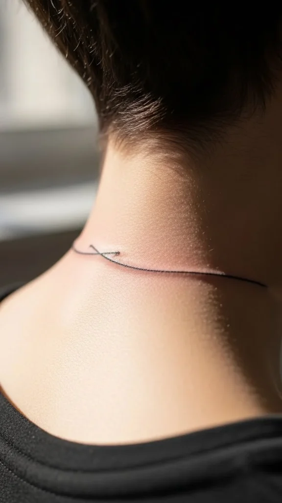 Budget tip: one line is fast. This can be one of the lowest-cost neck tattoo options.