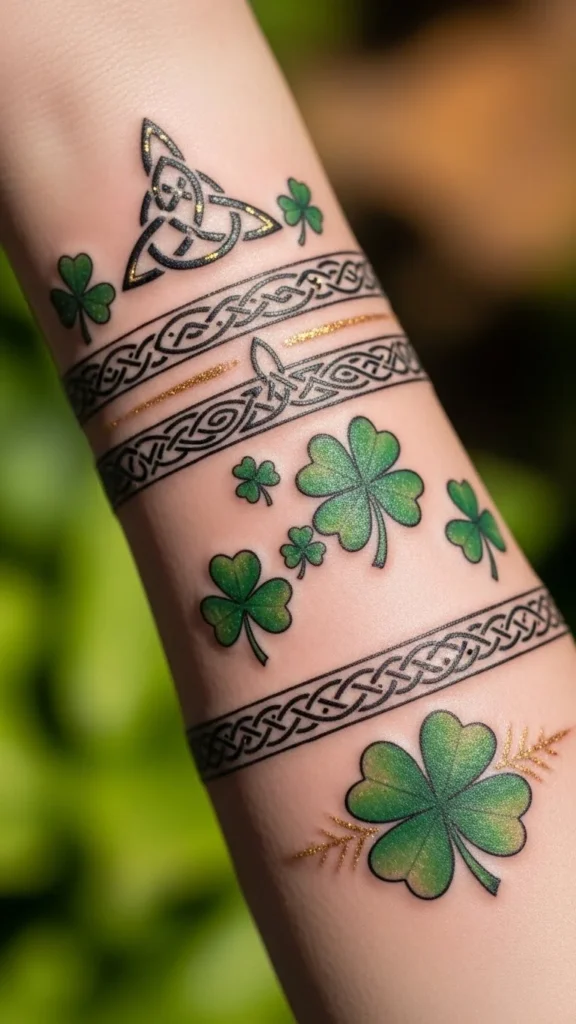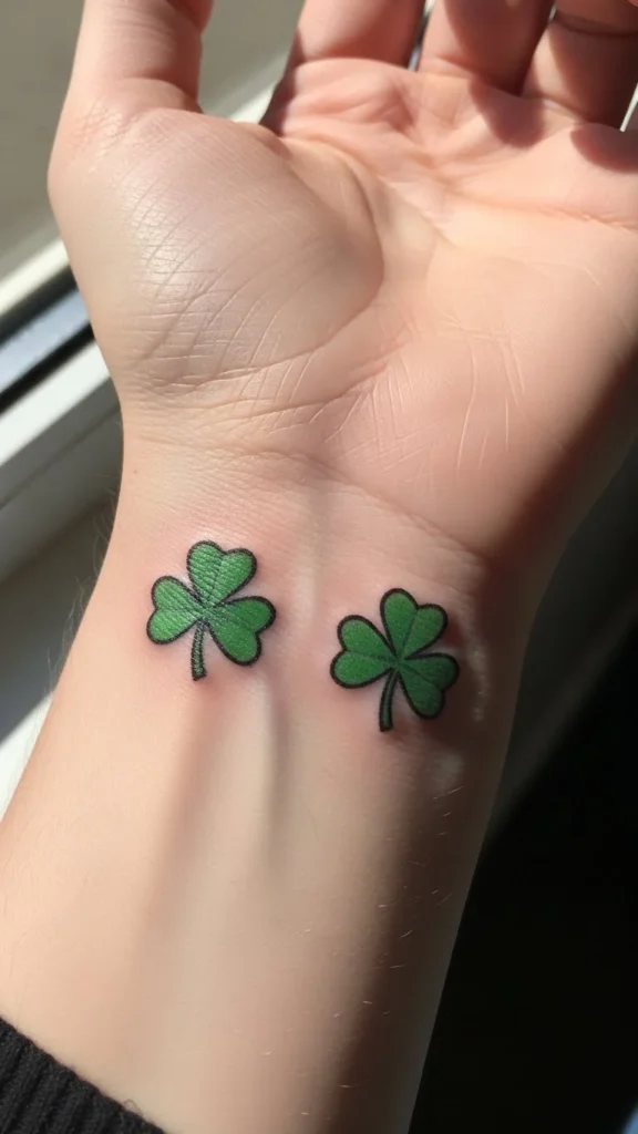 A pair of shamrocks on the wrist works well for friends, partners, or siblings. The double design doesn’t need to be bold to feel meaningful. Each shamrock can represent a person or moment.