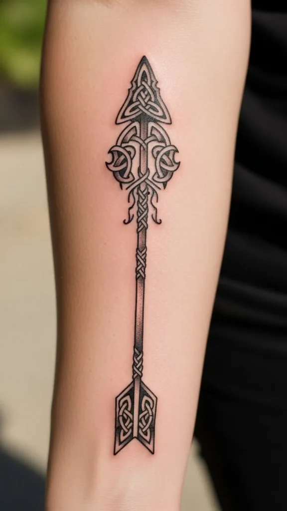 A Celtic arrow symbolizes direction and intention. The design works well if you’re marking a new chapter in your life. You can keep the shaft simple and add a tiny knot pattern to the tip for Irish flair.