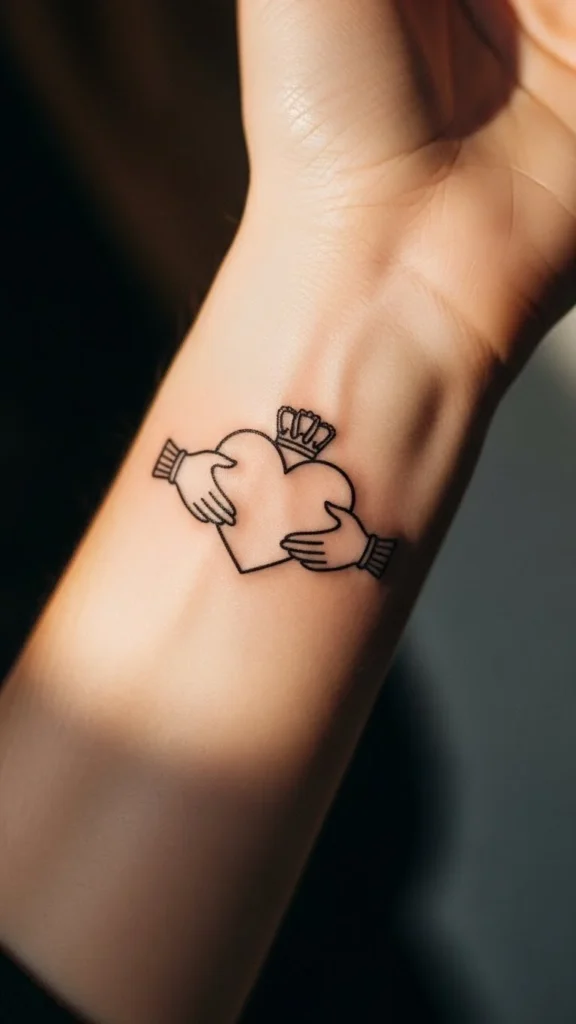 The Claddagh symbol—heart, crown, and hands—stands for love, loyalty, and friendship. You can keep it light by choosing an outline version. Even with minimal detail, the meaning stays strong.