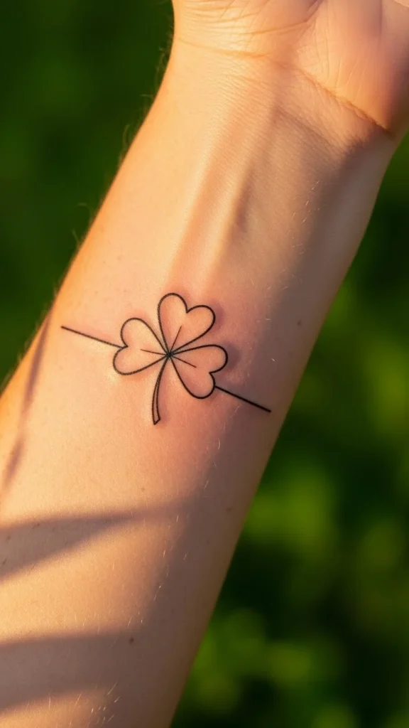 A shamrock line tattoo works well if you want something small that still carries meaning. The three leaves can represent hope, faith, and love, giving you a simple reminder you can see every day. Choose a thin line for a clean look. It sits nicely on the wrist, ankle, or collarbone without overpowering your style.