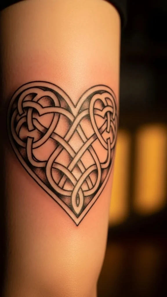 A Celtic heart knot blends symbolism with elegance. The loops represent unity and affection. If you want something meaningful for a partner or family member, this design works beautifully.