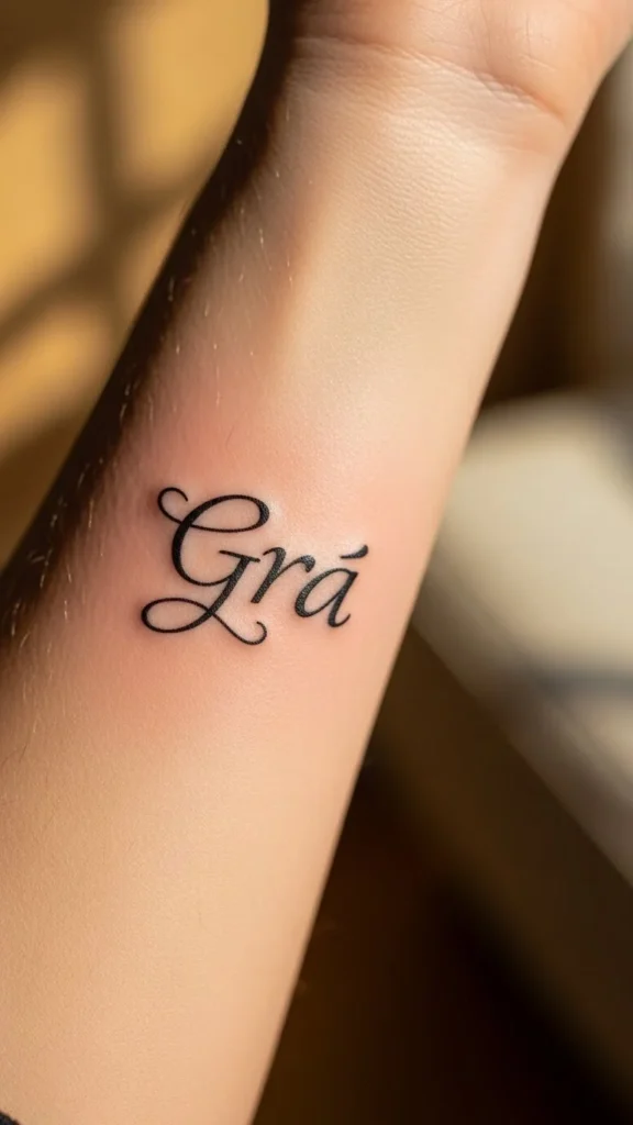Gaelic script tattoos often feel personal. A single word can carry a deep meaning. Popular choices include terms tied to love, strength, or family. Thin script keeps the appearance elegant and easy to pair with other tattoos later.