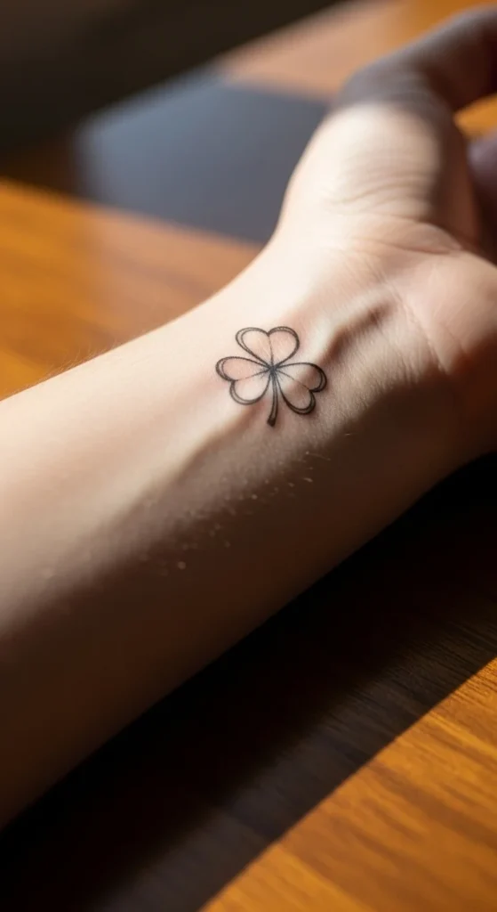 A small symbol on the inner wrist works well if you want something visible yet soft. It’s a great pick for minimalist clover outlines, tiny hats, or small Celtic-inspired shapes. You can test size with a pen sketch first to see how it looks with your everyday accessories. Bracelets can frame the ink nicely without hiding it. Keep the design simple because this area is compact. If you’re on a budget, choose clean linework to shorten tattoo time. A friend can help you practice placement by drawing different shapes so you can compare before committing.