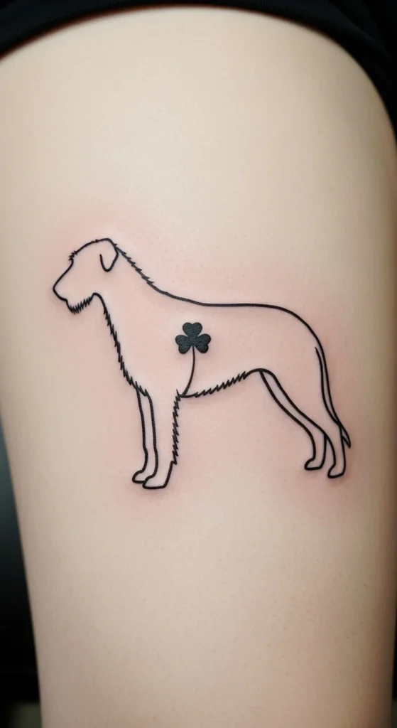 This design works especially well for dog lovers or anyone who appreciates Irish symbolism. A silhouette keeps the cost reasonable because it avoids heavy shading. Adding a tiny shamrock inside the outline gives it a soft and personal touch. You can try different placement angles by printing silhouettes and taping them in place. The outer thigh usually works best because it keeps the shape from stretching. Many people choose fine lines for a clean, modern look. It’s subtle enough for daily wear while still full of meaning.