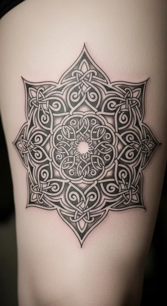3. Celtic Knot Mandala on the Upper Thigh