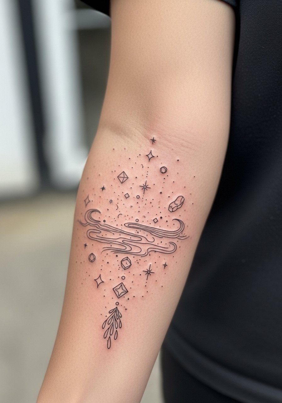 I picked this because fine line surrealism reads delicate and introspective. The inner forearm lets the design flow lengthwise—perfect for elongated dream motifs like floating islands or melting clocks. Pain is manageable here; expect some soreness for a few days. Healing takes 2–3 weeks for surface skin; keep it moisturized with fragrance-free lotion. From what I’ve seen, ultra-fine lines can blur over years, so ask your artist to slightly thicken the primary contour lines for longevity. Avoid overcrowding tiny details—they look great fresh but can merge when healed. Ask for an artist experienced in illustrative fine line and subtle dotwork to get that airy, dreamlike feel.