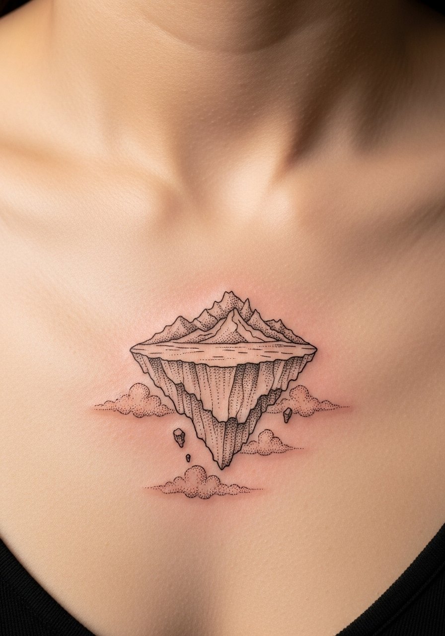 Sternum placements look otherworldly—floating islands, tiny ecosystems, and architectural ruins read like personal dream maps. Pain is intense; the sternum is bony and thin. Healing requires breathable tops and sleep positioning care to avoid friction. Fine lines here may blur; request slightly heavier key lines to hold through healing. Overloading with tiny stippling can end up muddy, so prioritize clear negative space and anchor points. If you want a symmetrical dream-panel, bring photos of healed sternum work to your consult.
