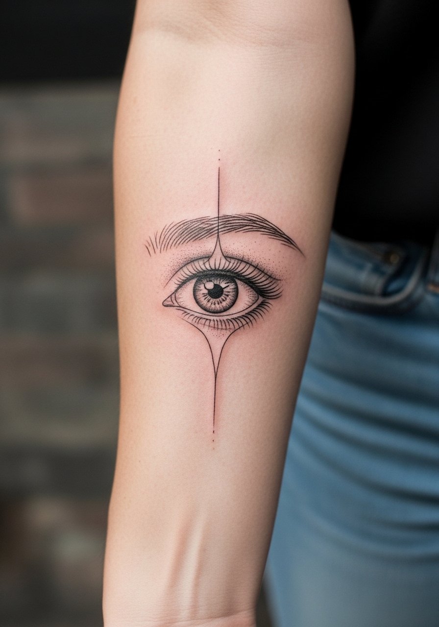1. Fine Line Floating Eye on Inner Forearm