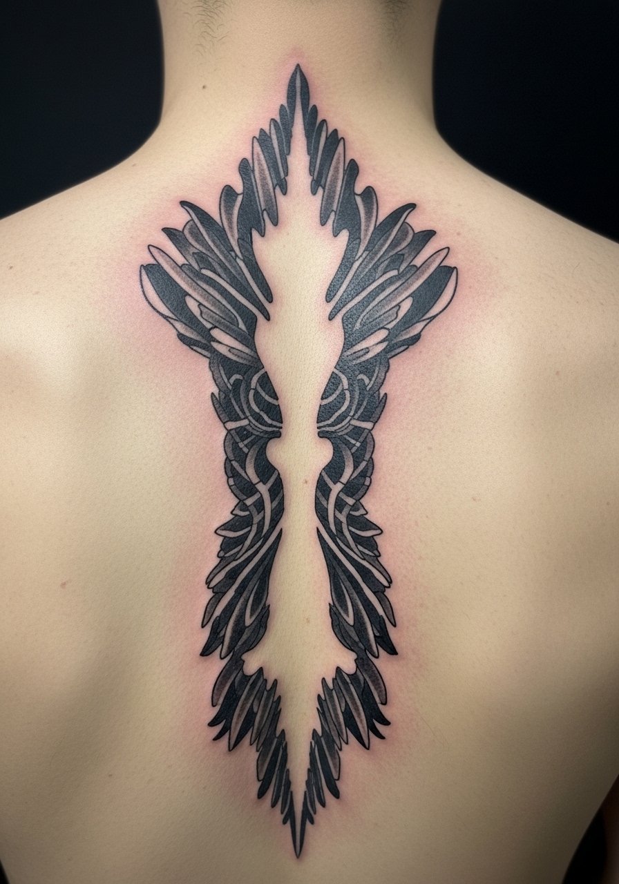 There is a dramatic feel to negative space designs down the spine. Pain can be high near the vertebrae. Sessions are split across visits. I advise asking the artist to plan the piece as modular panels. A common mistake is making panels too small. Small panels lose definition faster. At six months the negative space remains strong. At two years small thin elements may fade. In my experience, artists who can draft modular layouts preserve the overall composition over time. Placement is striking in open-back clothing.
