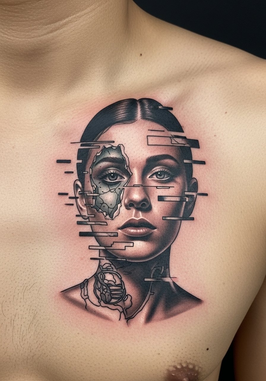 I saw a glitch portrait on a collector who wore it like a story. The chest gives a bold central placement. Pain is moderate to high near the sternum. Sessions are multi-hour. Ask for clear anchor lines in the portrait so the fragmented areas don’t dissolve. People often request too-fine glitches. Those lose separation and look like smudges. At six months the breaks still read. At two years the fine separation can fade. Discuss staged sessions and touch-up strategy with your artist.
