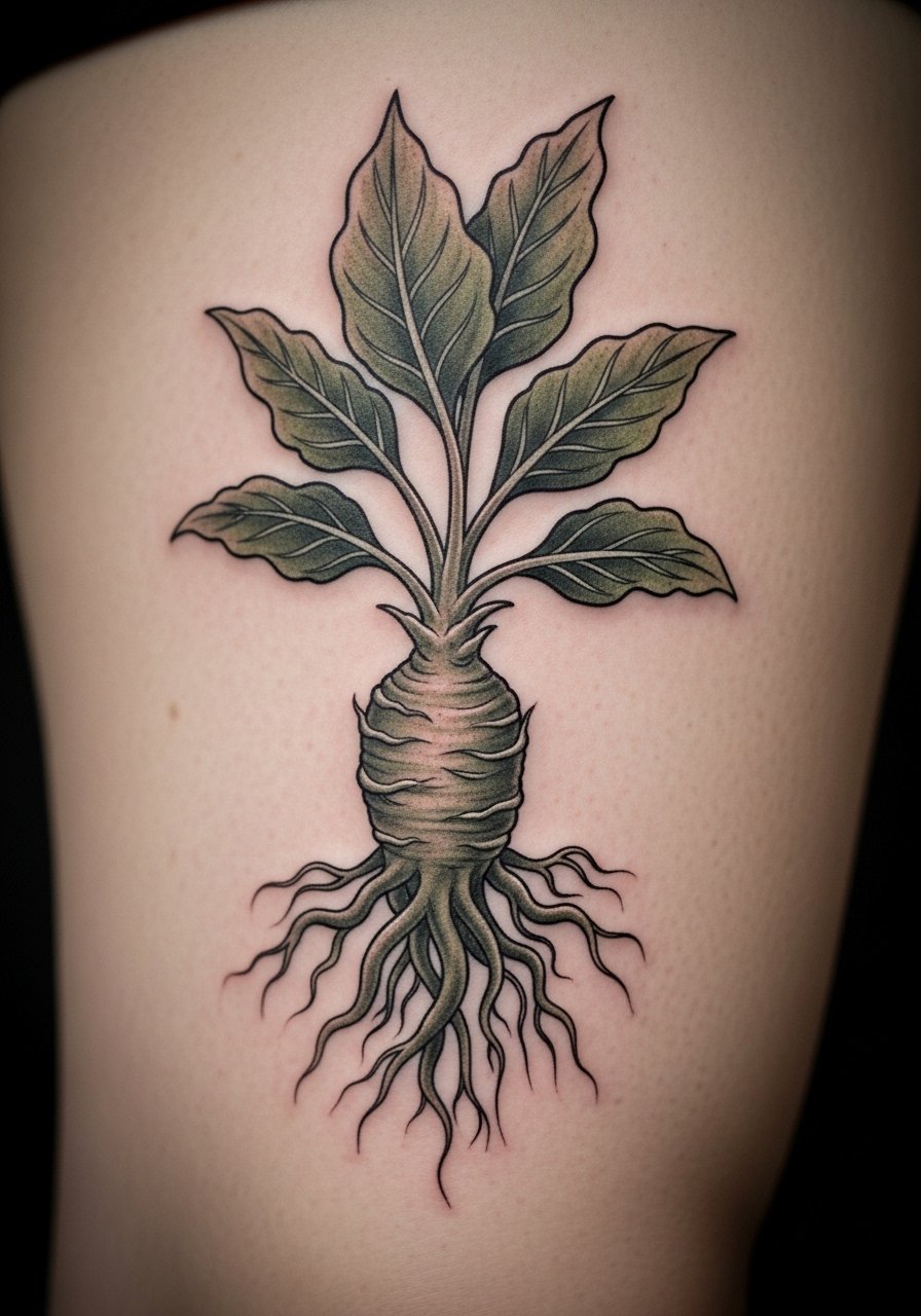 25. Surrealist Mandrake Plant on Thigh