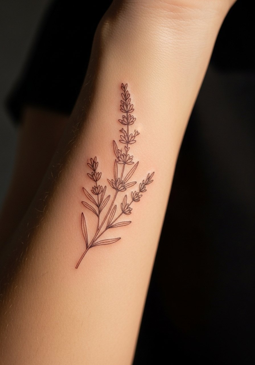 1. Fine Line Botanical on Inner Forearm