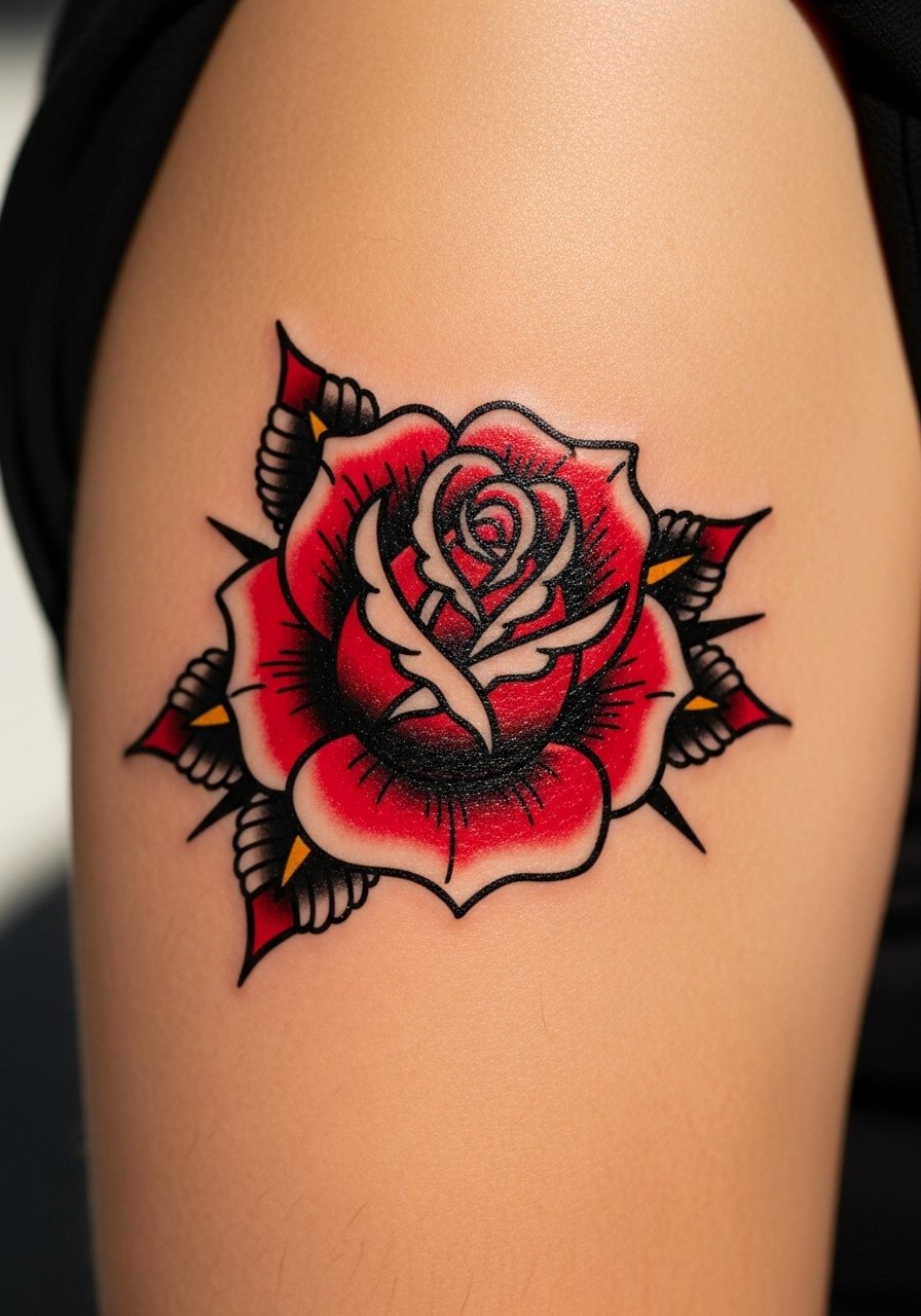 2. Traditional Rose on Upper Arm