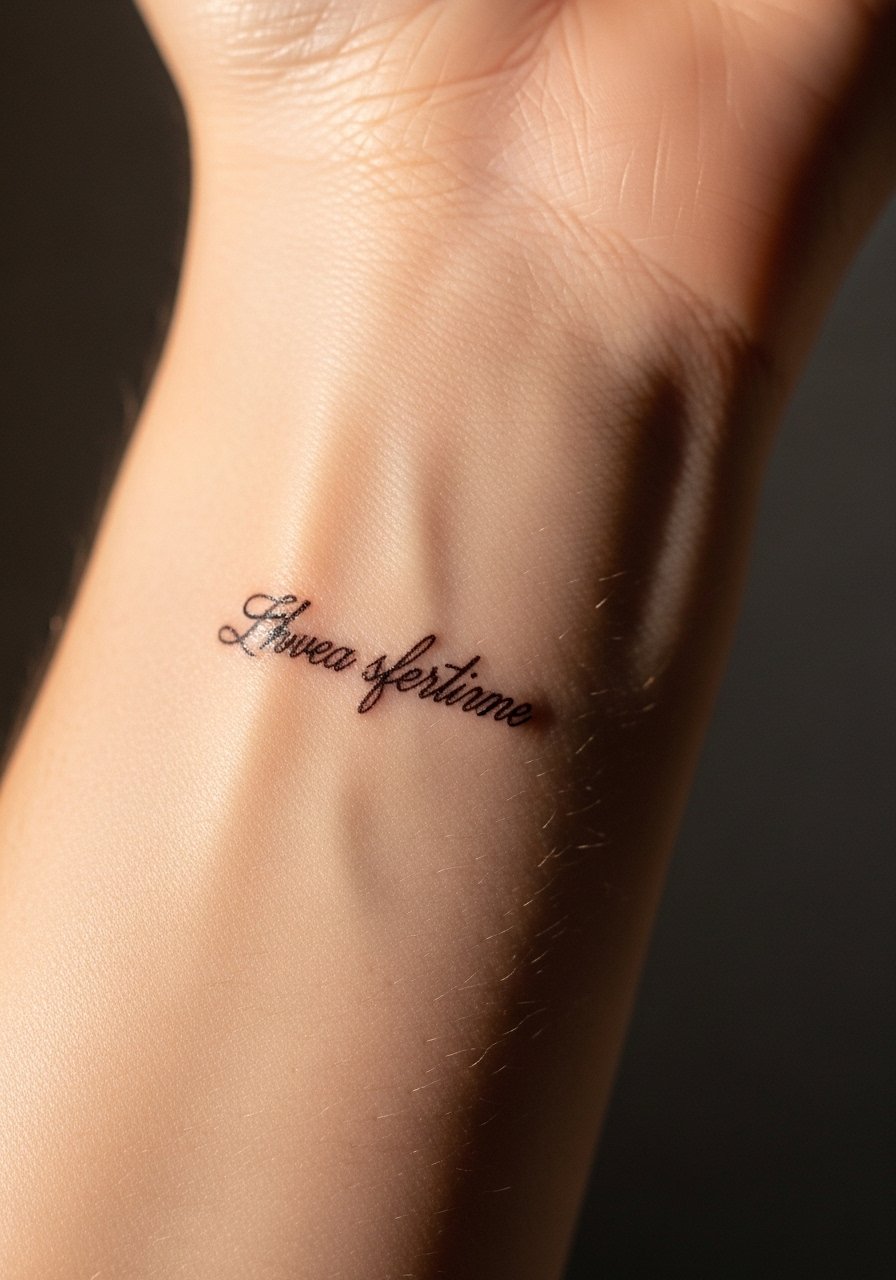 Tiny handwriting-style tattoos are a classic way to test a phrase without commitment. Realistic micro script has slightly irregular line weight and isn’t perfectly black—look for transfers labeled “handwritten” or “micro script.” Wrist placements get a lot of rub, so expect shorter wear, but the visual payoff is immediate. Avoid overly crisp machine-like fonts; the human touch reads real. If you’re checking visibility for work or daily wear, this is the spot to try first.