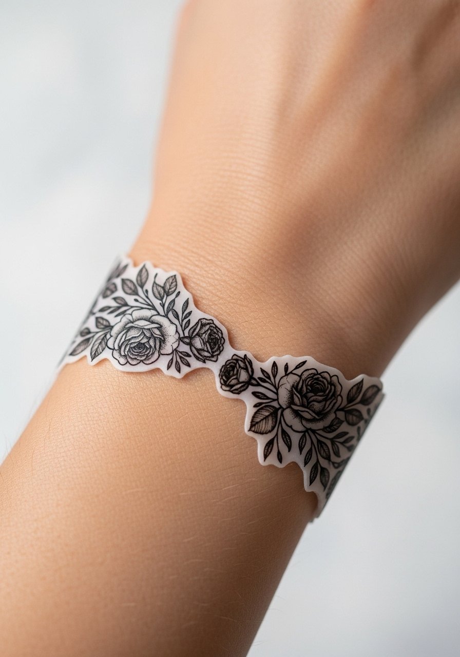 Wrist cuffs are an easy way to test jewelry-adjacent placement. For realism, select designs that aren’t perfectly symmetrical; tiny irregularities in petal edges mimic healed needle work. Because wrists face constant friction, expect short wear—good for events or short trials. Ensure the transfer is thin and the black lines aren’t too heavy; balanced line weight creates a natural look.