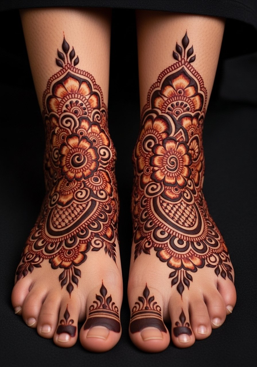 Bridal henna is one of the most convincing “real” temporary looks. The deep brown stain and traditional motifs read like authentic cultural work. Feet and ankles take henna well and show how patterns move with walking. If you’re testing a henna-based design for a ceremony, this is the way to see scale and intricacy. Let the paste set long and follow aftercare to deepen the stain.