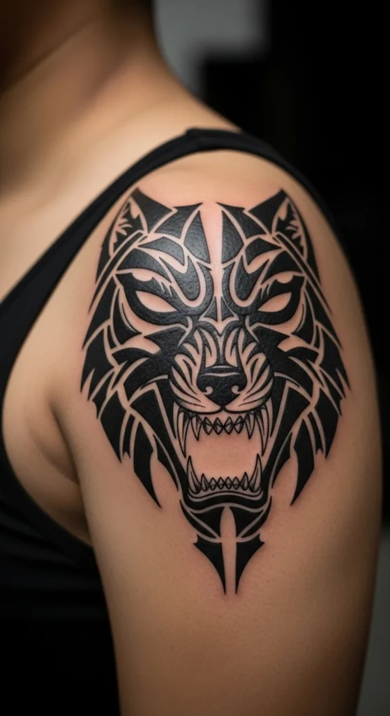 A tribal wolf mask blends animal energy with bold patterning. Keep the face simple. Focus on eyes, snout, and ears. Fill the rest with geometric shapes. This style works on shoulders, thighs, or upper back. If you want to test mask shapes at home, fold paper in half and cut a symmetrical shape. Open it to reveal a balanced mask. This trick costs almost nothing and gives you a quick layout. Ask the artist to keep the outline thick for long-term clarity. If you’re aiming for a low-cost session, skip shading. Plain black shapes age well and don’t require touch-ups as often.