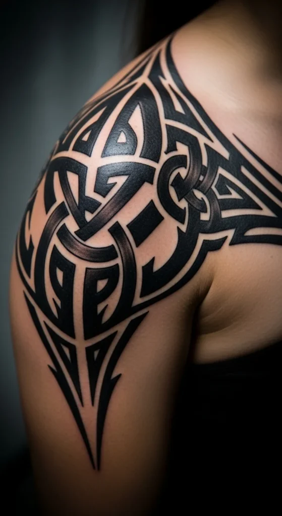 Some people want a mix of ancestral European designs and bold tribal lines. Celtic knots pair well with thick black shapes. Keep the knot simple—one loop or two. Too many crossings get muddy on skin. The idea works well on shoulders and upper chests. Start by sketching a basic knot. Then frame it with tribal curves. You can test the layout with a phone flashlight and stencil paper to see how shadows change the look. Keep lines thick so each part stands out. If you’re on a low budget, ask for the knot only during the first session. Add outer shapes later when you’re ready. Make sure each part has space so the knot doesn’t merge into the tribal frame over time.